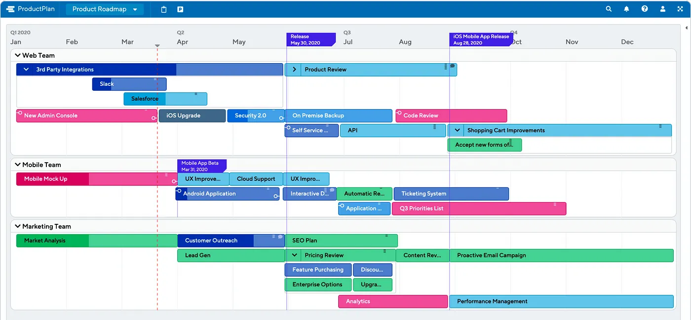 - 기능 및 이정표 설정: 제품 개발에 필요한 주요 기능과 이정표(마일스톤)를 설정합니다. 각 기능의 중요성과 개발 순서를 고려하여 로드맵에 반영합니다.